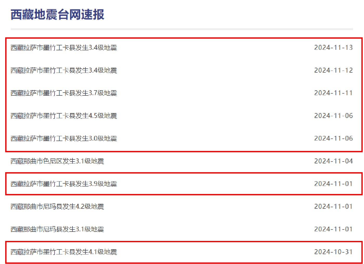 【综合中国地震台网、西藏地震台网快报】