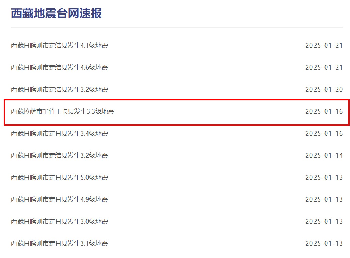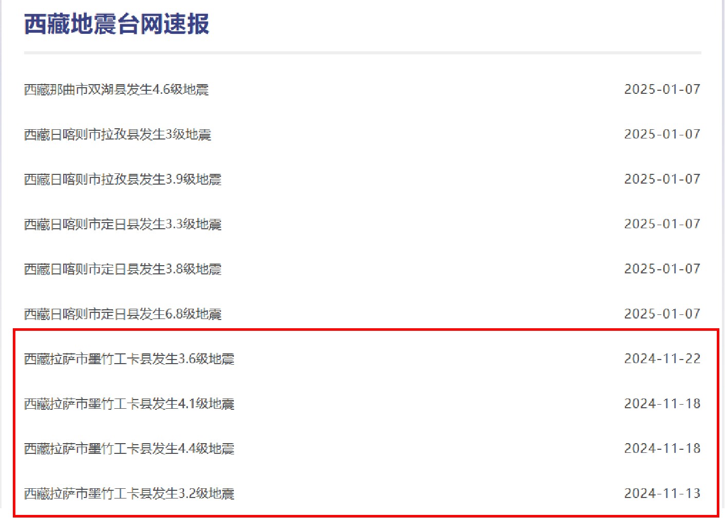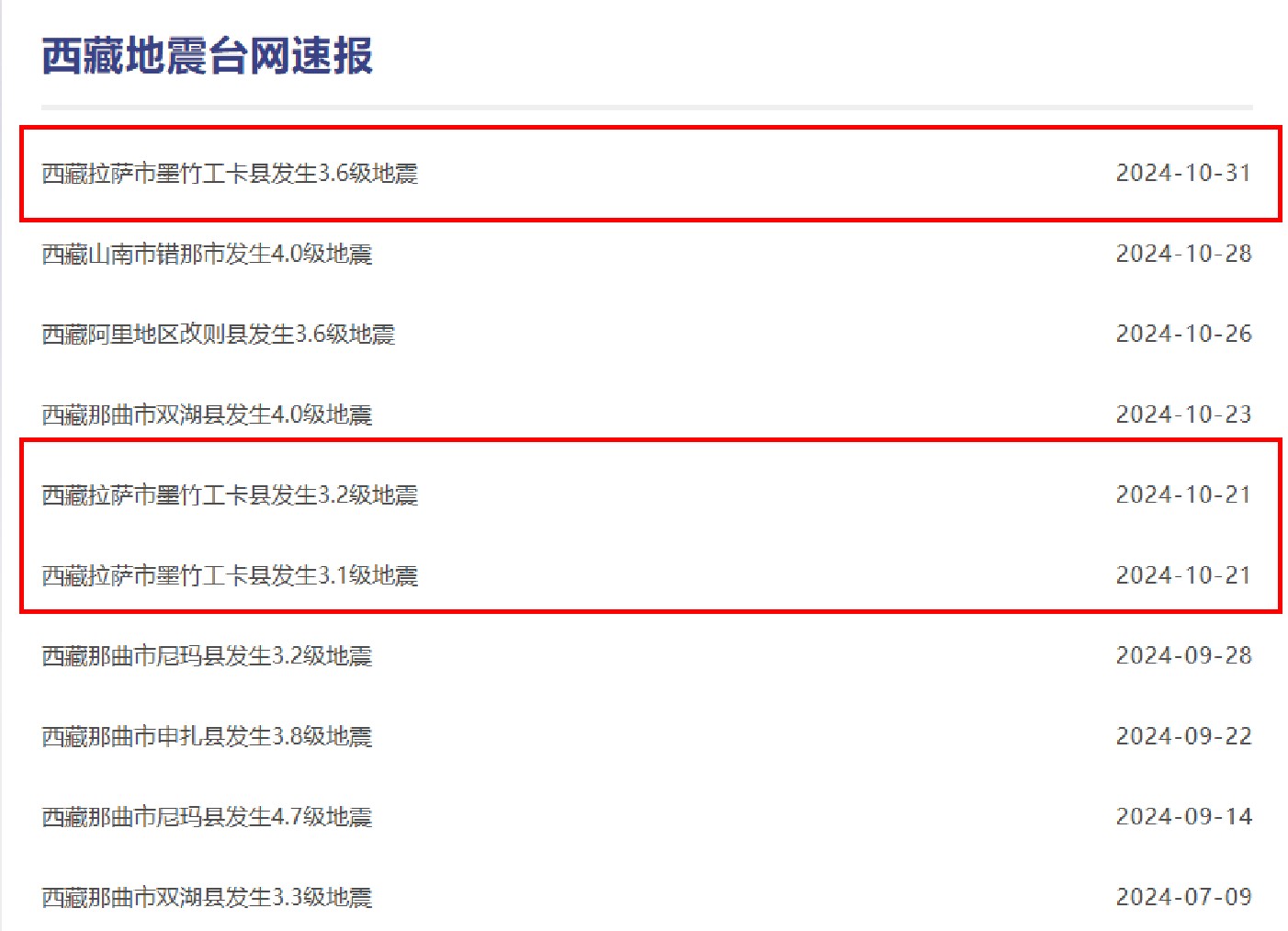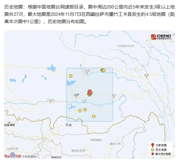 【综合中国地震台网、西藏地震台网快报】